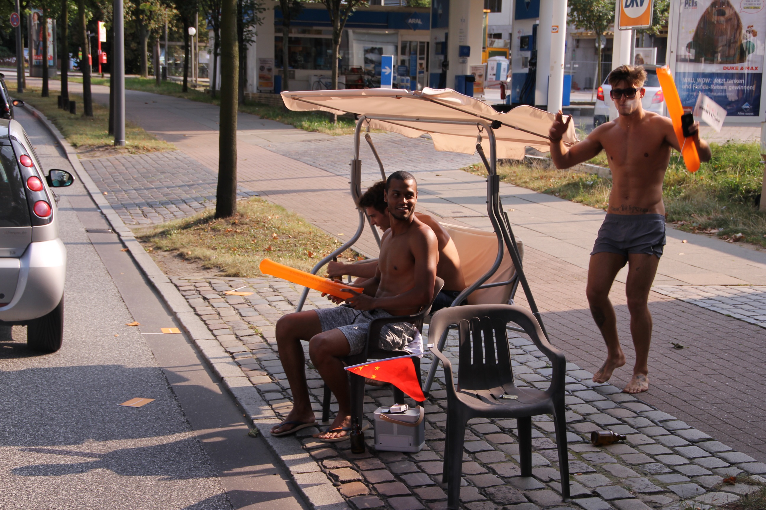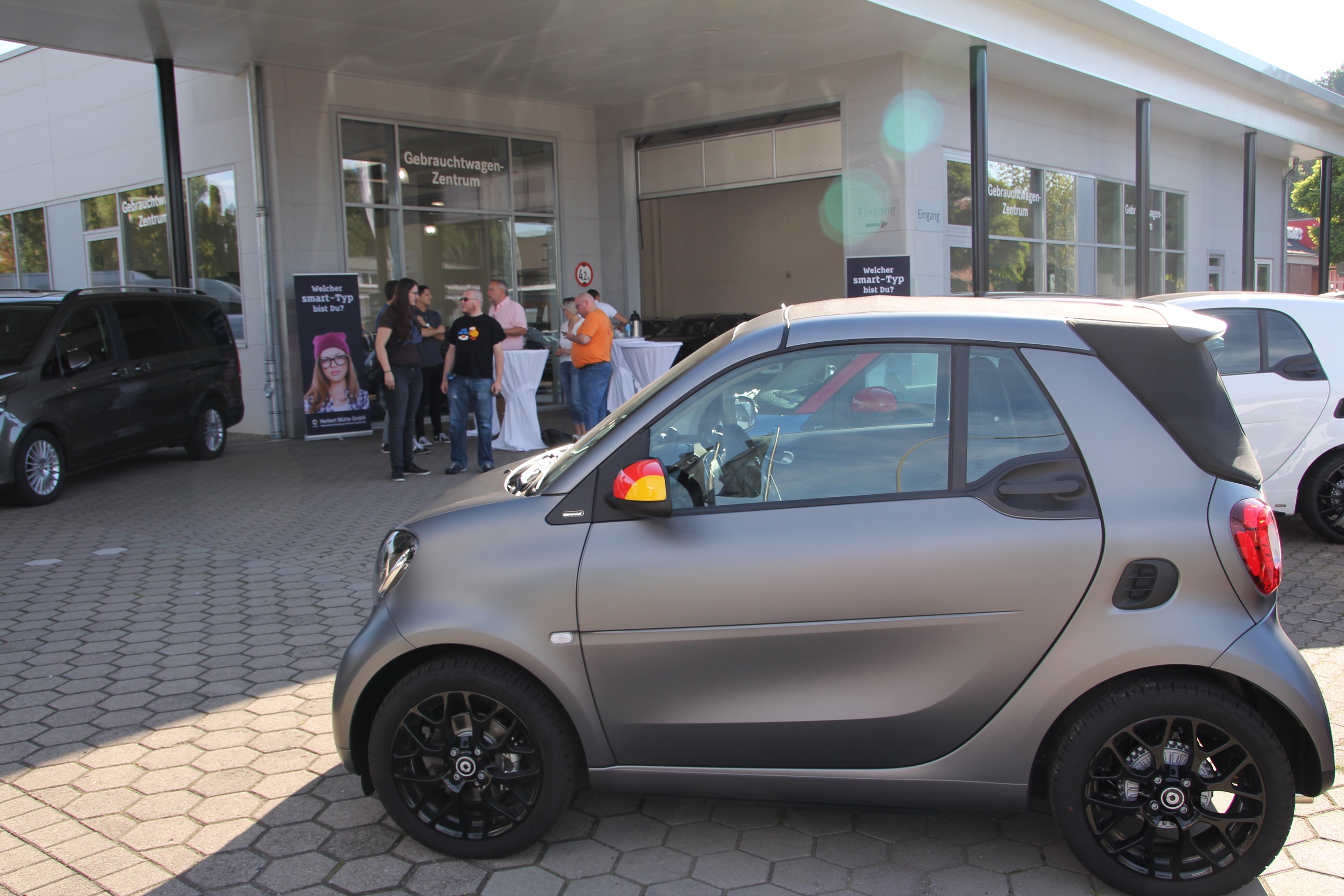 Fabian sah einen mattgrauen mit Deutschlandspiegeln. Kennzeichen gecheckt und einfach mal gefragt: "Ist das Dein Auto?"